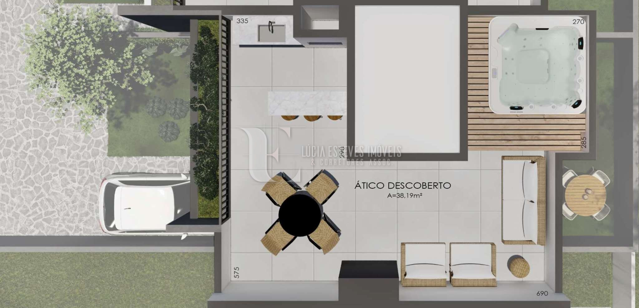 100m² de área coberta + 42m² de terraço no ático = 142m² privativos