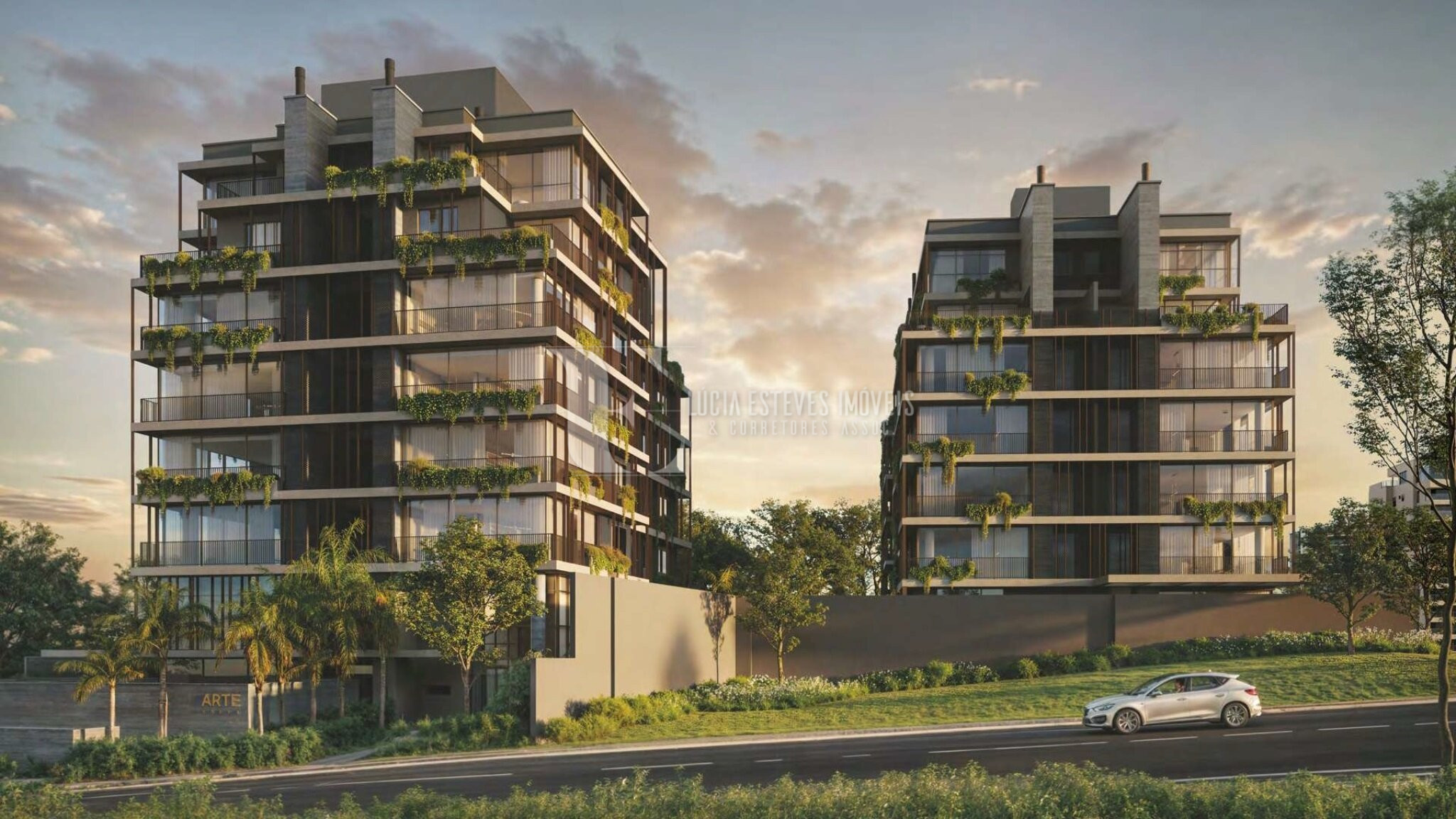 As torres do Arte Batel, localizadas no ponto mais alto da Carmelo Rangel, oferecem vistas livres no platô da região, projetadas para garantir privacidade e conexão com a natureza.