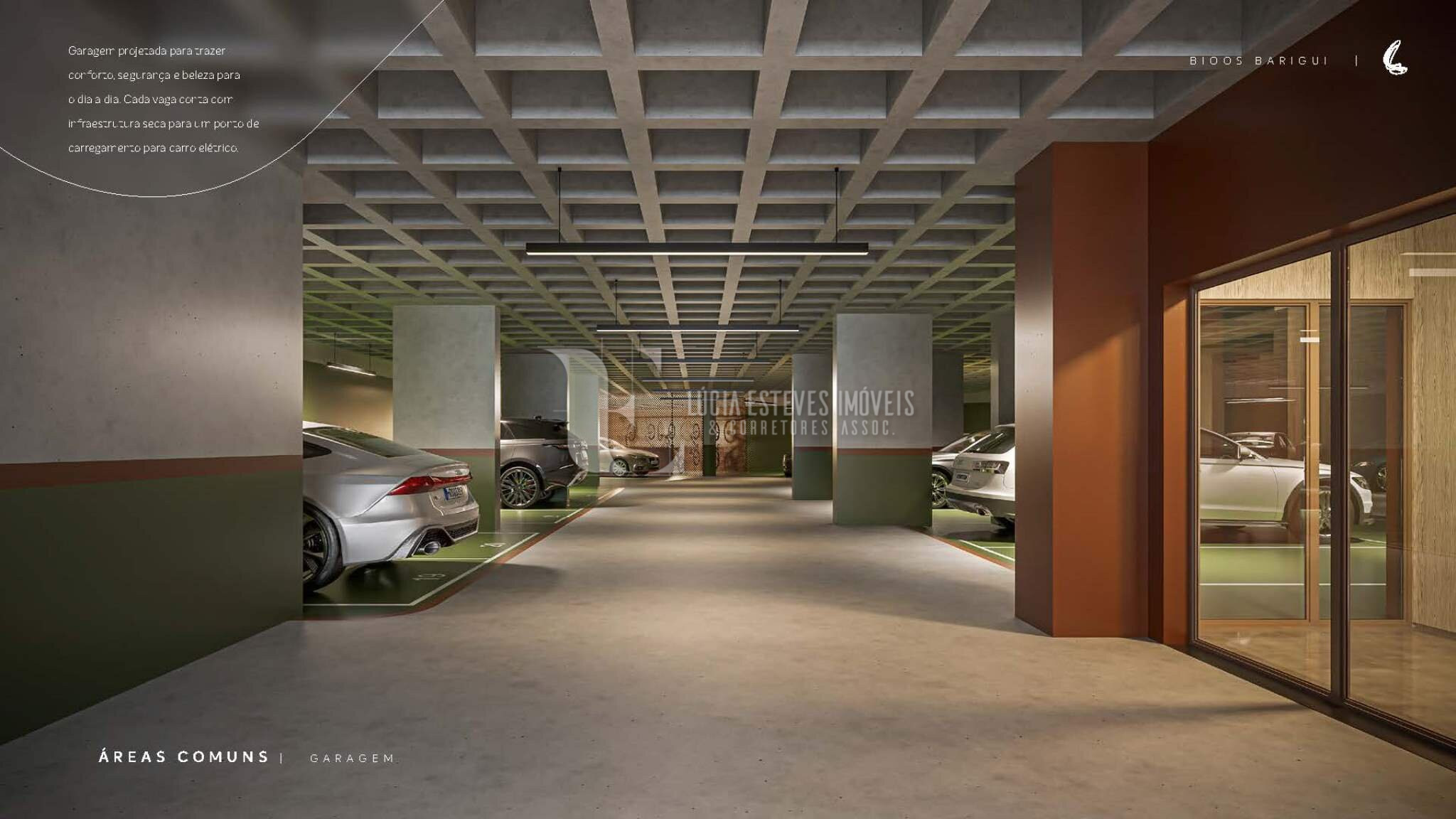 Guarita blindada, Concierge, Eclusa social com reconhecimento facial, Elevador para maca, Hall de entrada, Térreo com praça e 4 lojas, Central de entregas e delivery, Lobby, Salão de festas, Bicicletário com oficina, Vestiário e copa para funcionários, Estacionamento para visitantes, 1 ponto de carregamento de carro elétrico por unidade, CFTV.