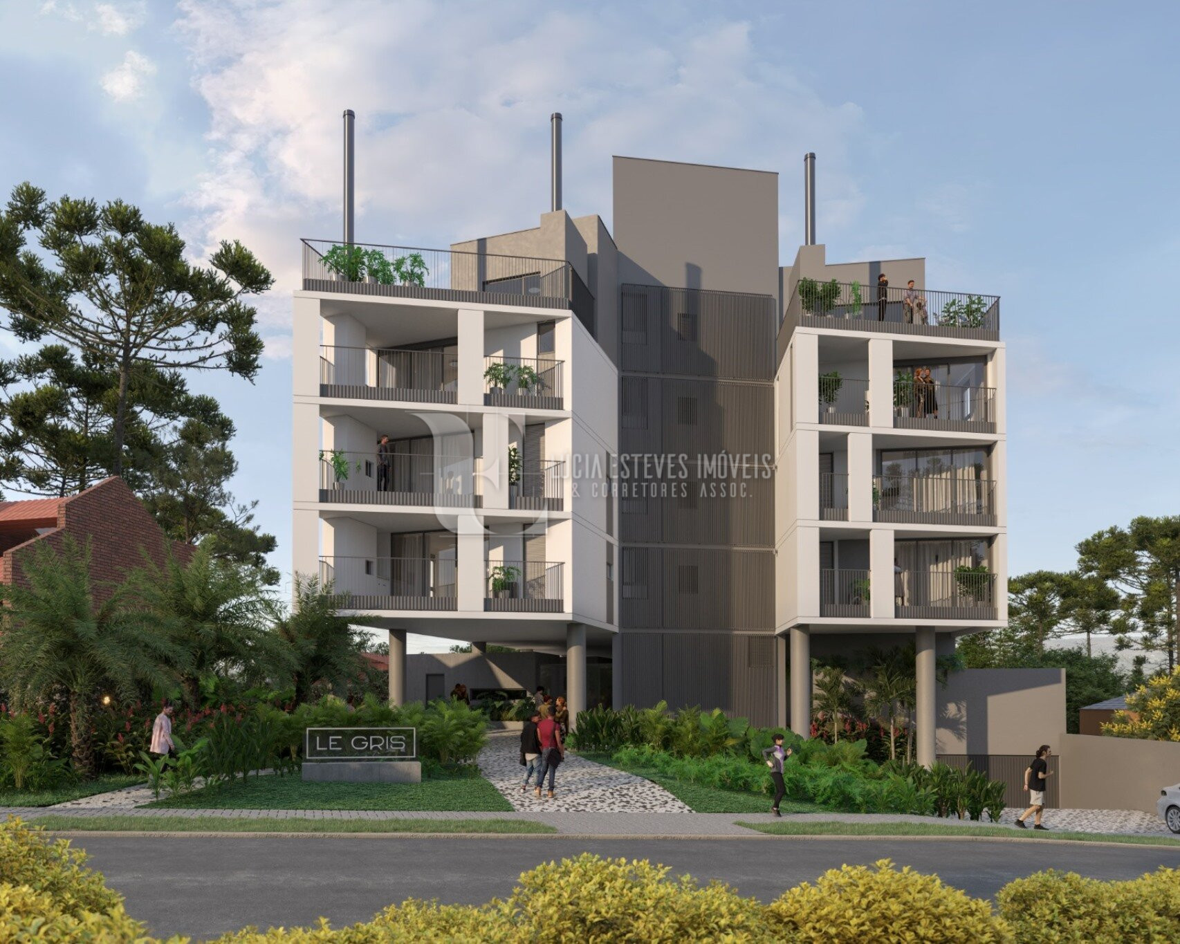 Mais do que apenas um edifício, o Le Gris almeja tornar-se um marco na arquitetura e no significado de “Bem Viver”. O prédio tem um projeto arquitetônico onde foram utilizadas linhas puras e contemporâneas tendo obtido um resultado harmônico, agradável e integrado ao verde e sossego do entorno. Empreendimento exclusivamente residencial cercado de muito verde, projeto paisagístico exuberante e espaços de convivência pensados para o bem estar dos moradores.
