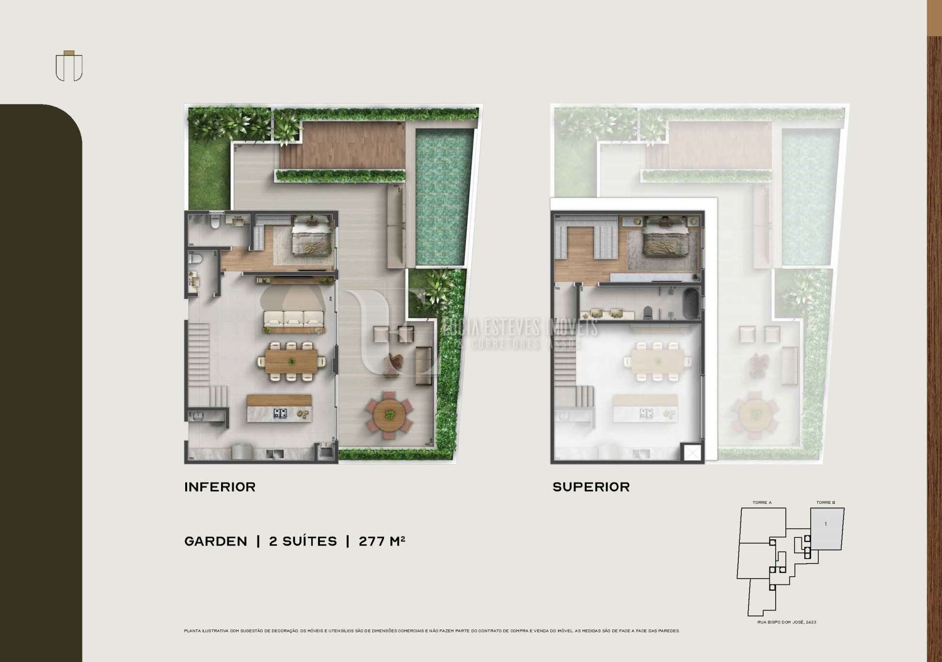 Apartamento com 133,01m² + 143,83m² de jardim exclusivo = 276,84m² privativos