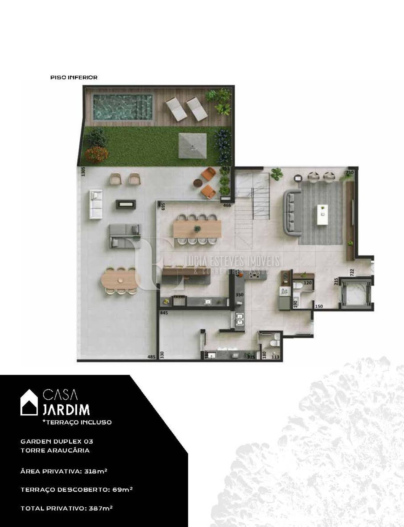 318m² de apartamento + 69m² de jardim exclusivo = 387m² privativos
