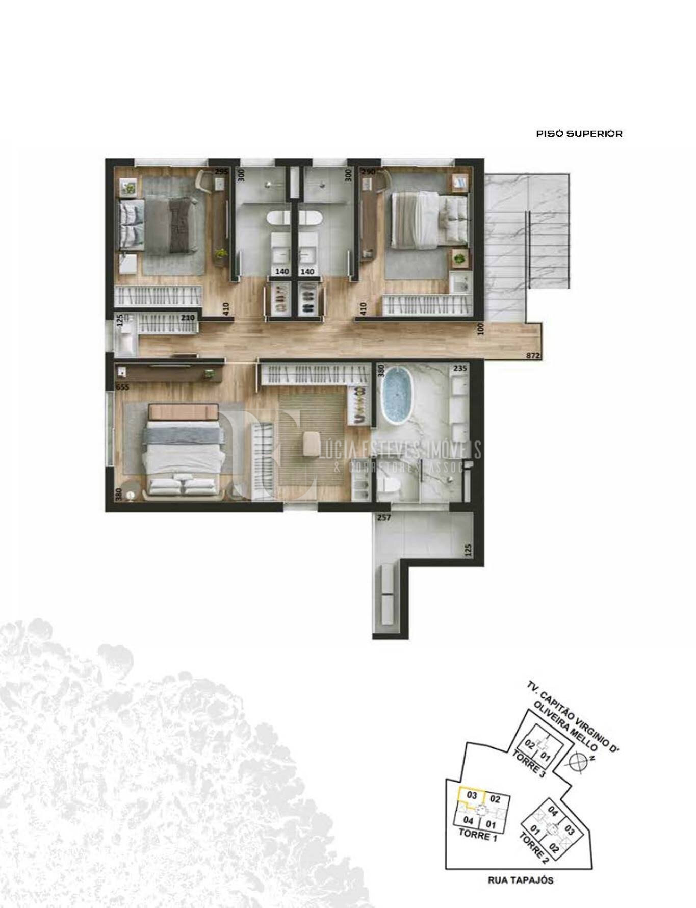 3 torres (T1-Araucária / T2-Jerivá / T3-Paineira)