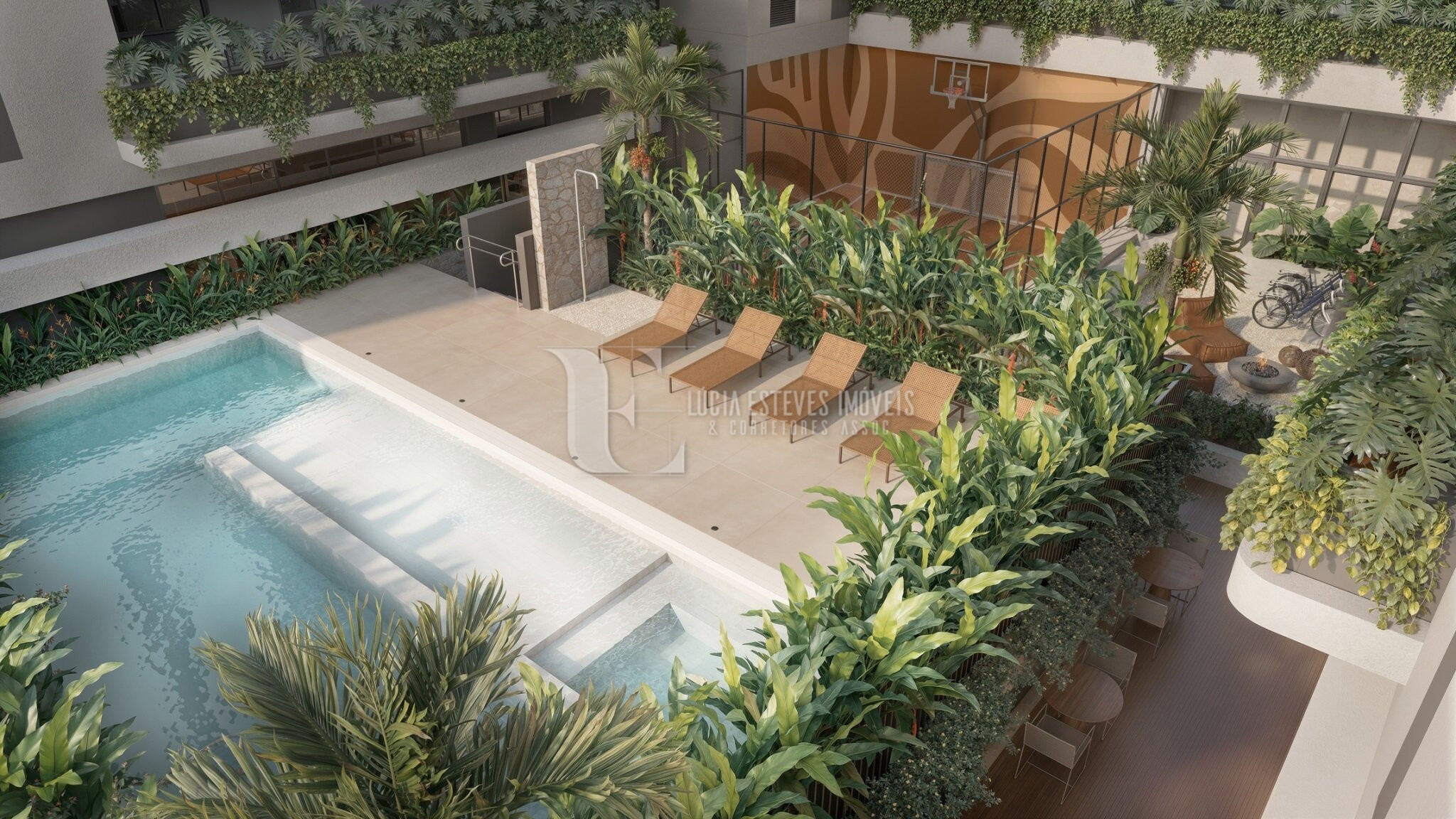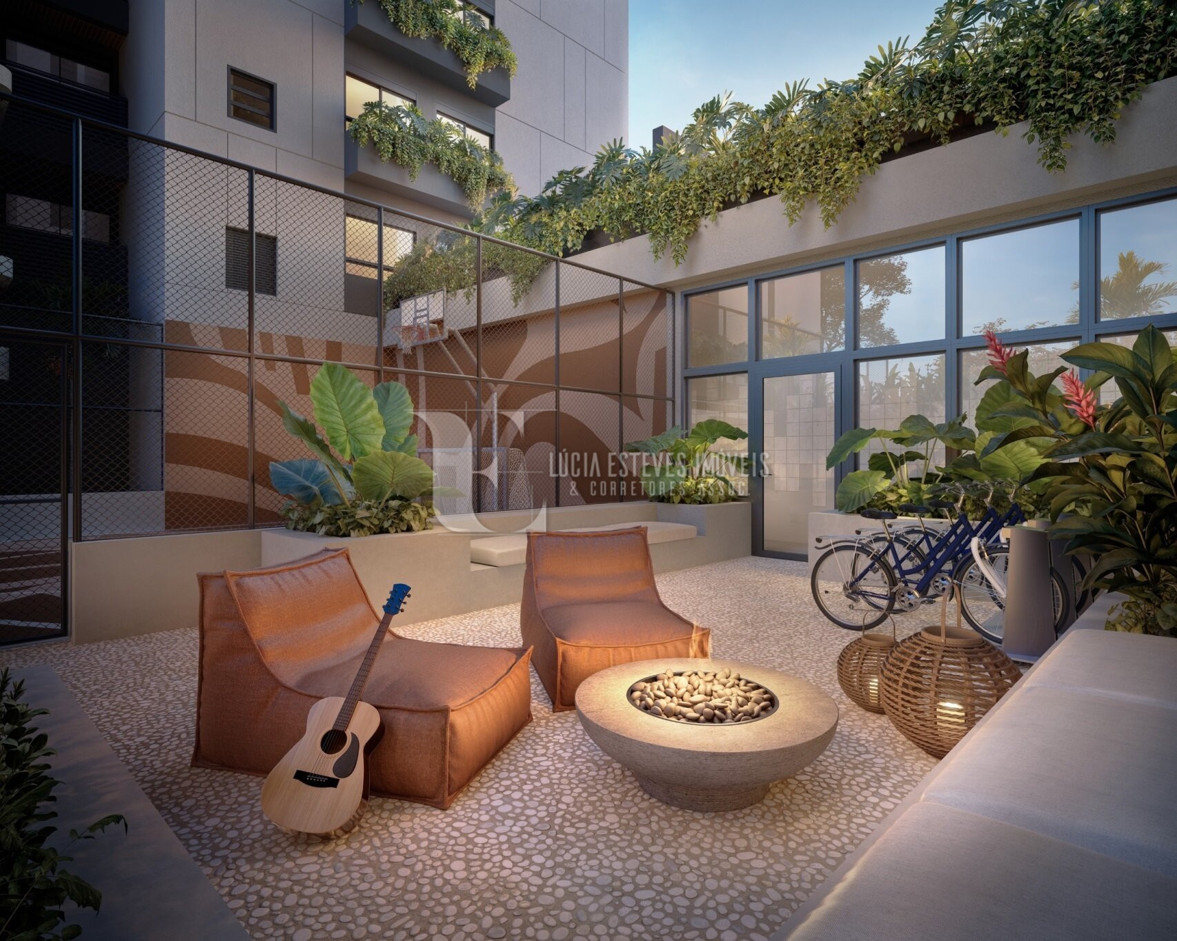 Port cochère, Hall de entrada, Central de entregas e delivery, Mini market, Coworking, Sala de reuniões, Brinquedoteca, Salão de festas, Salão de jogos, Bicicletário, Bike friendly, Mini quadra, Espaço pet, Fire place, Piscina externa, SPA com hidromassagem, Academia, Sauna, Pomar e horta, Carregador para carro elétrico, Sistema de placas voltaicas, Gerador de energia, sala de segurança, Copa e bwc para funcionários.